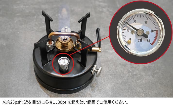 搭載された高耐熱アナログ圧力計により、タンク内圧を常に可視化。