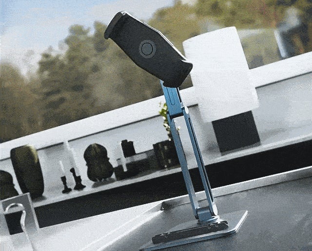 - アルミ合金のスタンドで荷重約10kg!4-12.9インチのスマホ、タブレットどちらも使用可能。