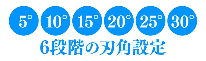 5° / 10° / 15° / 20° / 25° / 30° の6段階で刃角の設定が可能。