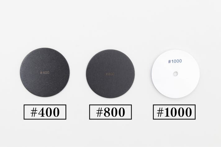 また400番手と800番手はダイヤモンド砥石、1000番手はセラミック砥石を使用。