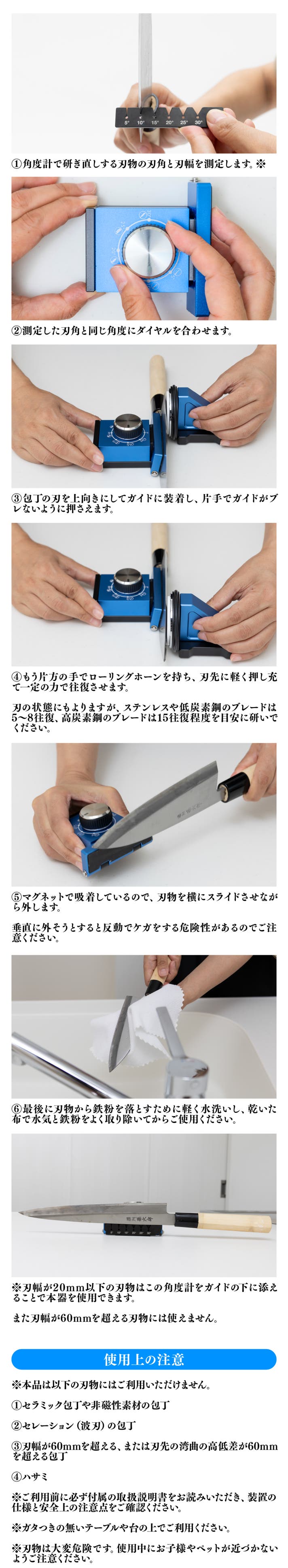 - 【5~30°まで6段階で刃角を調整】刺身包丁から農機具のナタまで幅広い刃物が研ぎ直せる