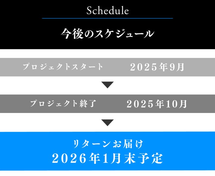 このプロジェクトはAll in型です。目標金額の達成に関わらず、プロジェクト終了日の2025年10月29日までに支払いを完了した時点で購入が成立します。
