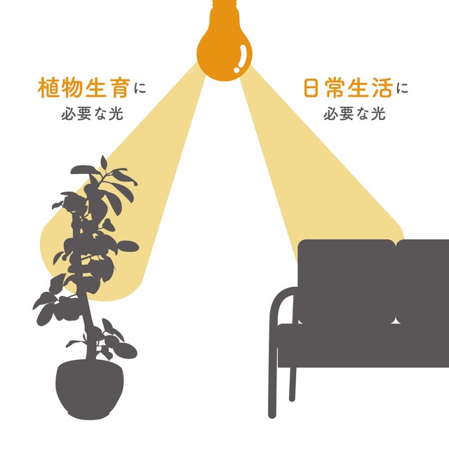 →雨の日や、日中カーテンを閉めて外出する人など、様々な状況でも植物が育つように光を放ちます。