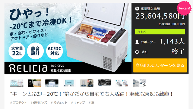 「Makuake(マクアケ)」は、実行者の想いを応援購入によって実現するアタラシイものやサービスのプラットフォームです。このページは、 プロダクトカテゴリの 「パワーUPして新登場!自宅でも使える静音設計&冷蔵と冷凍使い分け!車載冷凍冷蔵庫」プロジェクト詳細ページです。