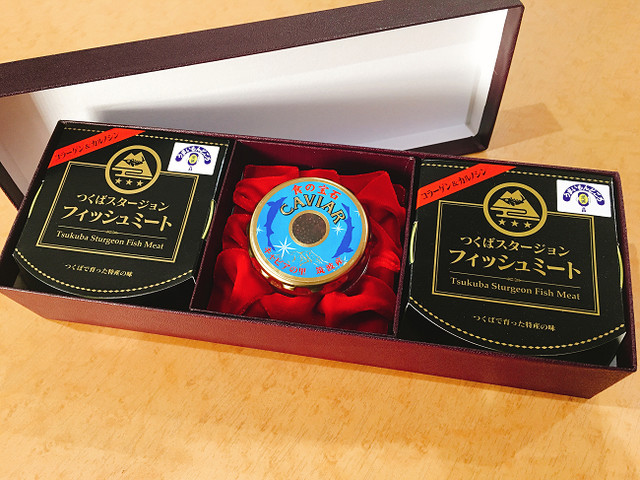 筑波山の伏流水で育てたチョウザメを缶詰にしました。