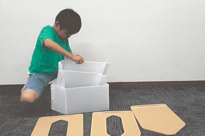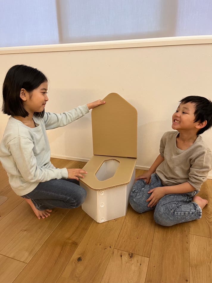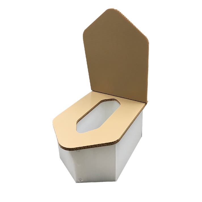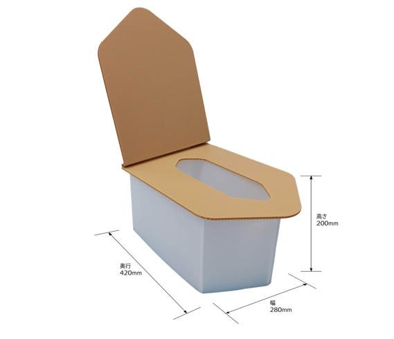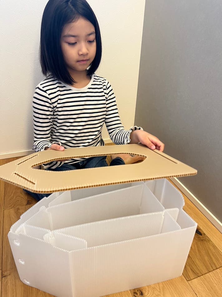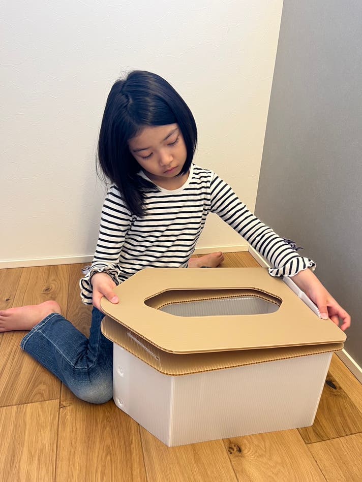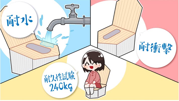 耐久性・耐水性があり、加工の汎用性も高いプラスチックダンボールという素材を、防災アイテムとしてカタチにしたのが「こども用簡易トイレ」です。