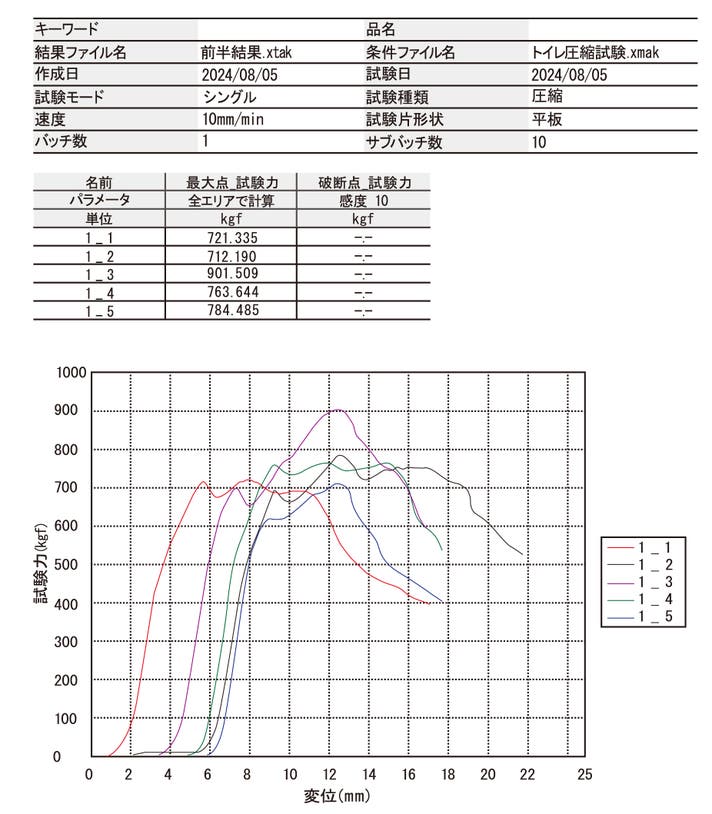 600~700kgの荷重をかけるとトイレは潰れましたが、240kg時点まではそのままの形状を保つほどの強度です。