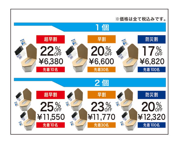 【防災割/20%OFF】簡易トイレ2台 トイレセット付き