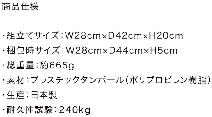 - プラスチックダンボールという軽くて丈夫で耐水性のある素材を使っており、繰り返し使用できます。