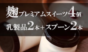 【追加リターン】麹プレミアムスイーツ4個+ジャージーブラウン乳製品2本+スプーン2本セット