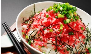 凍ったまま炊きたての御飯にのせ、葱や大葉、刻み海苔などを添えてお召し上がりください。
