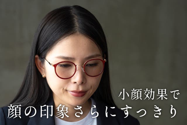 さらにゆったりとしたラインのフルリムデザインにより、小顔効果のうれしい「大人かわいい」をカタチにしました。