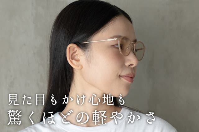 見た目もかけ心地もすっきりと軽やかな、女性にうれしいアイウェアです。