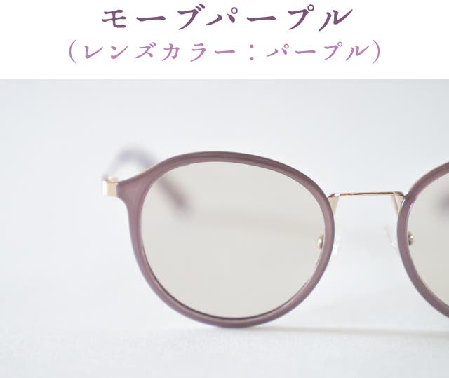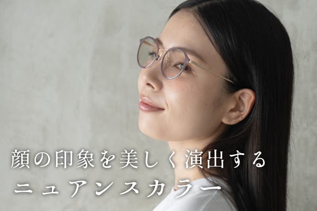 薄紫色のレンズにより目元のクマを中和して、目元を美しく演出。