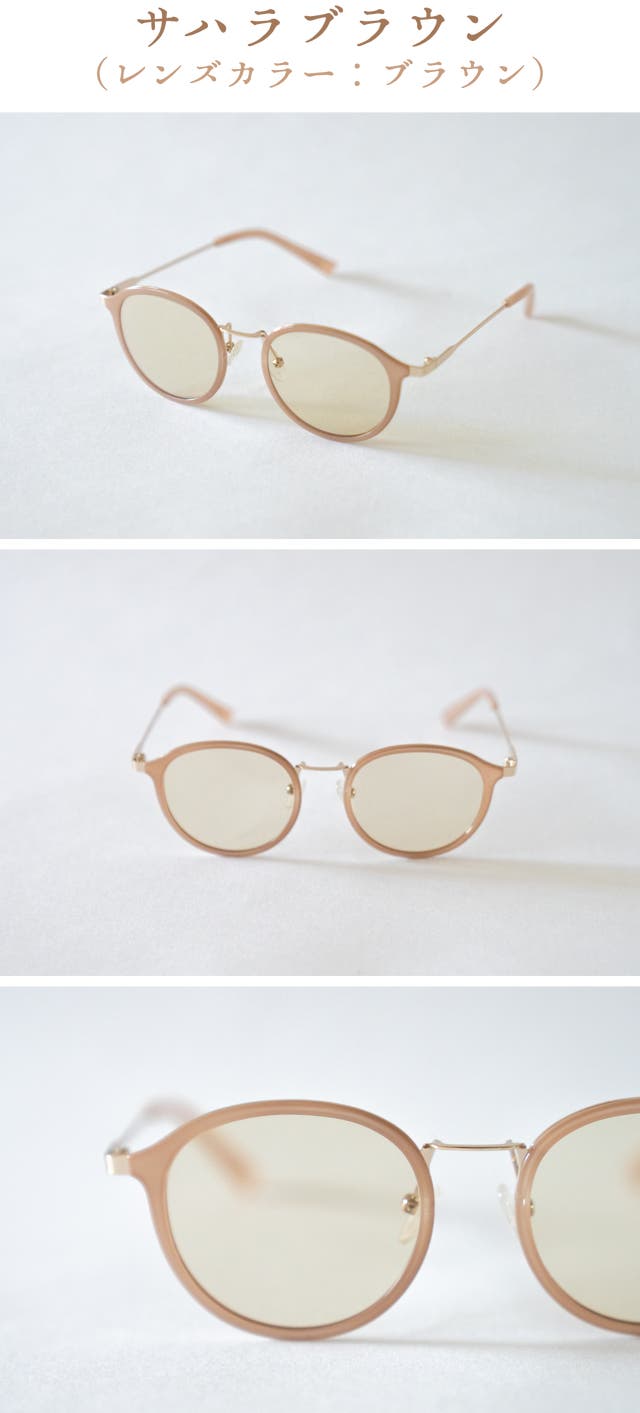 ブラウンのレンズで目元のシミやくすみが目立ちにくくなり、より若々しい印象に。