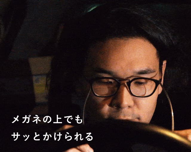 左右が開いた形状のため、メガネの上からでも干渉せずに装着することができます。