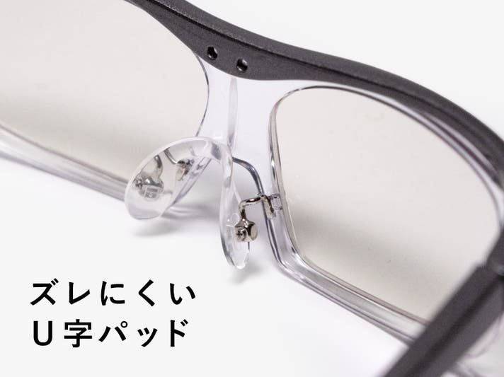 U字型のパッド(鼻当て)を採用し、鼻の先に当ててもずり落ちにくく、しっかり固定される設計です。