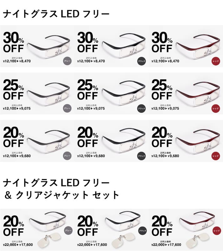 【早割25%OFF】ナイトグラスLED フリー ブラック
