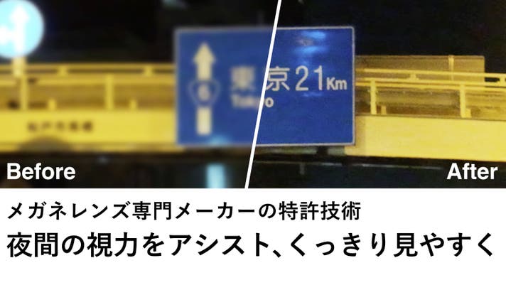 - 暗いところでもくっきり見やすく。メガネレンズ専門メーカーの独自技術で視力をアシスト