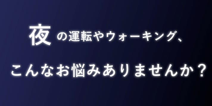 夜の屋外は暗闇だけでなく「眩しさ」もあなたの視界を脅かす大きな要因。