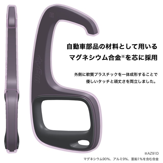 マグネシウム合金をソフトなプラスチックで包んだハイブリッドフック。