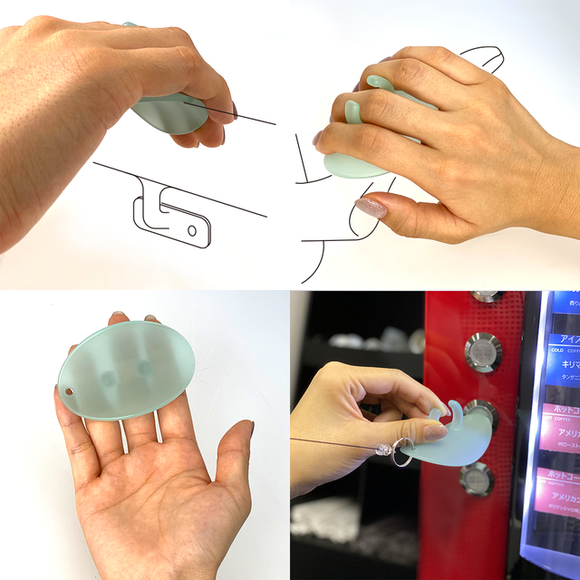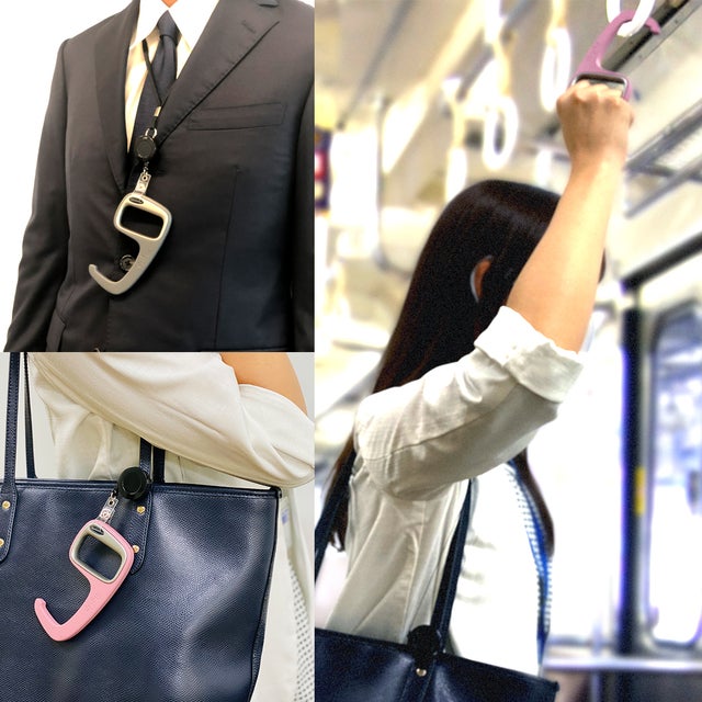 柔らかい素材なので手の平になじみ、手すりやドアノブ、電車やバス内のポールにもフィットします。
