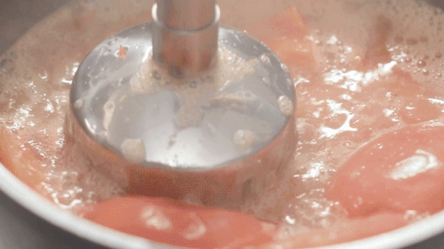 沸騰した鍋やタンブラー、ガラス瓶、ステンレス製の器にブレンダーを入れてそのまま調理してもOK!