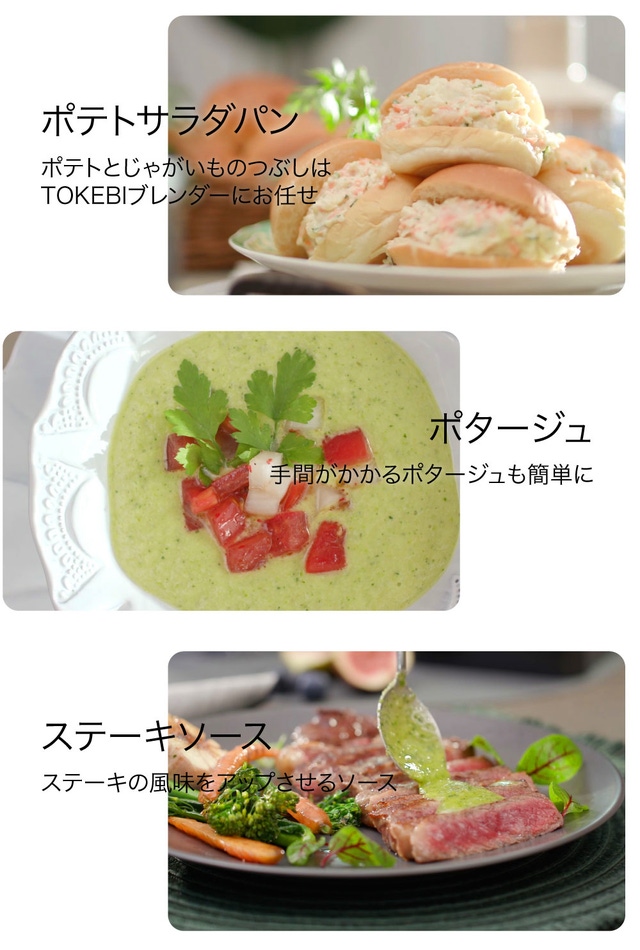 調理例:スムージー、離乳食、トマトジュース、かぼちゃのスープ