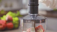 洗浄の際は、刃のヘッド部分を水に浸した後に20-30秒程度作動回転させると、刃についていた食材が除去されます。