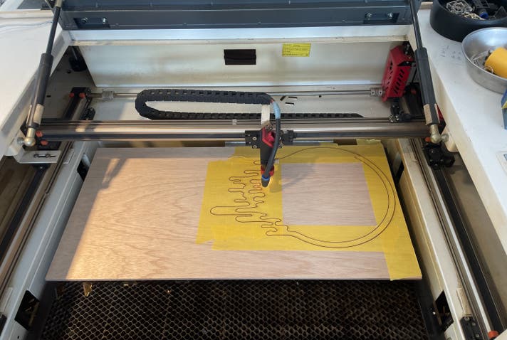 レーザーカッターで木材(ベニヤ)をデータ通りにカット