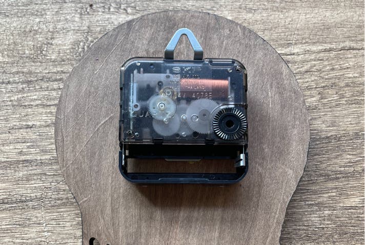 木材にも着色して接着、針・ムーブメントを取り付けて完成