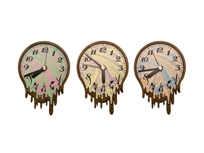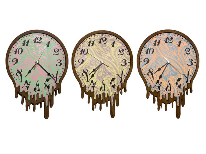 昨今では時刻を知るには時計は必要無く、携帯電話のデジタル画面を見れば正確な時刻が常に表示されています。このようなアナログ時計は時代遅れで不必要なものかもしれません。光ったり溶けている必要もありません。笑