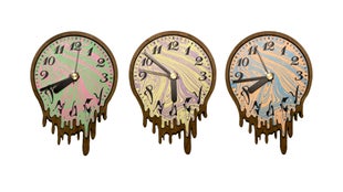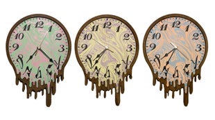 昨今では時刻を知るには時計は必要無く、携帯電話のデジタル画面を見れば正確な時刻が常に表示されています。このようなアナログ時計は時代遅れで不必要なものかもしれません。光ったり溶けている必要もありません。笑