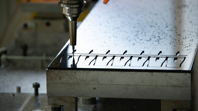 1枚のアセテート素材からバングル部分を削り出しているところ