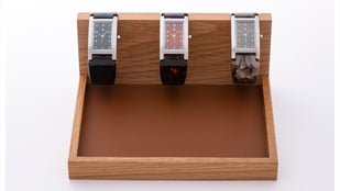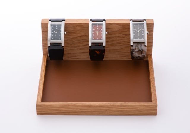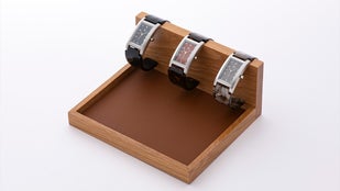 「呂色」「銀地」「琥珀」の文字盤とお好きなバングル1つをお選びいただけます。今回の特別企画として3種類すべて購入した方には、専用のトレイ付スタンドを無料で進呈。3種類の文字盤と3色のバングルを、気分やTPOで選んで、その日のコーディネイトをお楽しみください。