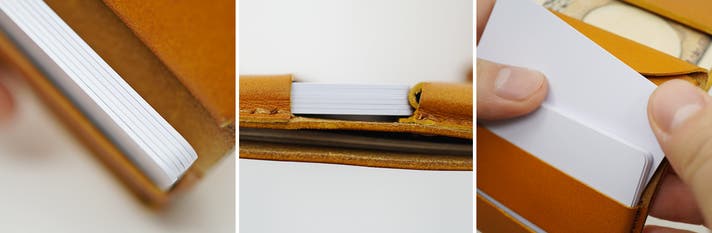 もちろん、長財布など収納力の高い財布と比べると容量は落ちますが、キャッシュレスを志向するアナタにとってはむしろ十分な容量ではないでしょうか。