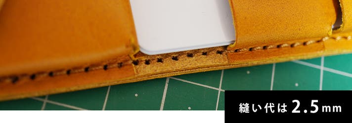 カード入れの横の縫い代は、2.5mm幅に設定しています。