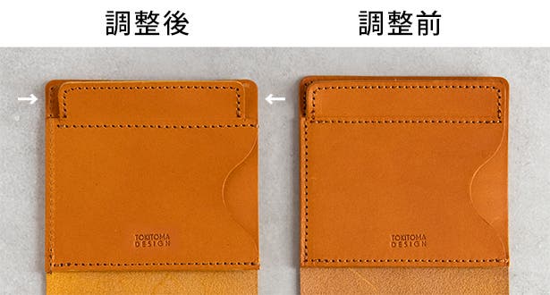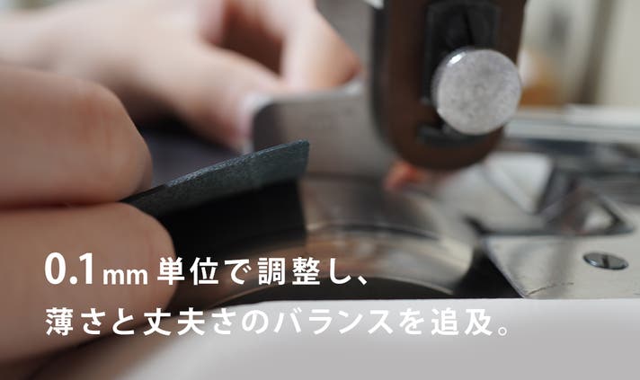 特に漉き(革を薄くする技術)については、機能性や見た目の美しさに直結するため、0.1mm単位で何パターンも用意してもらい、折り曲げた感じや手にとった感覚を比較し、最適なバランスを決定しました。