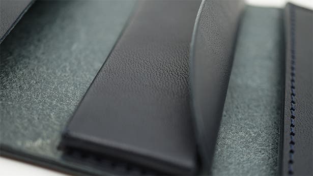 「財布を薄くすればするほど、革は柔らかさを増し、中身が少ないと形が崩れてしまう。この大きな壁にぶつかりました。芯材を入れれば厚みが出てしまう…。