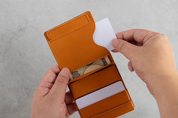 1枚カードポケットは、閉じたまま出し入れすることも可能です。