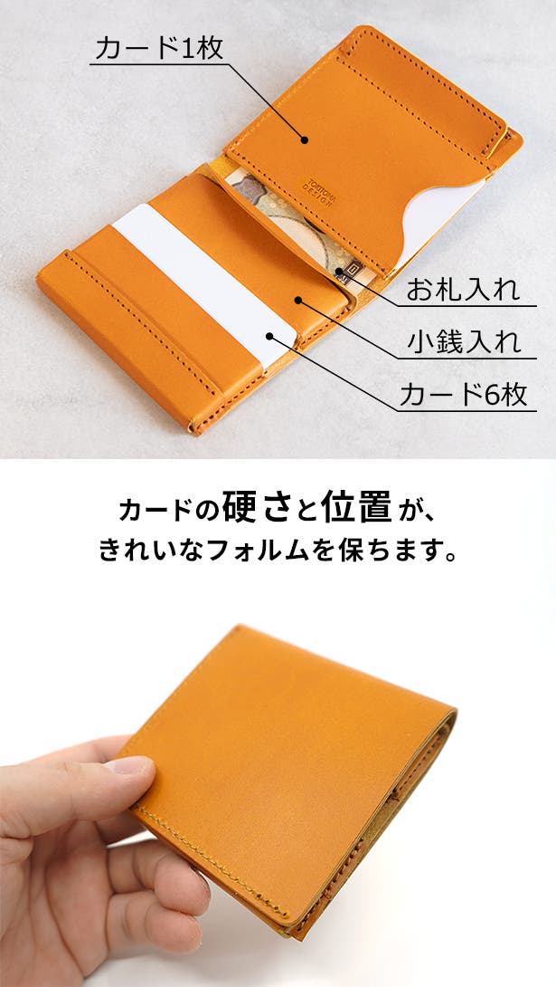 この二つ折り財布は、単に薄くて小さいだけではありません。使いやすさと便利さについてもアイデアを盛り込んでいます。
