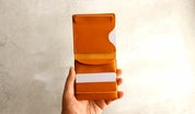 ですから、薄くて丈夫で型崩れしにくいように、1枚カード入れの位置やサイズ、革の厚みについてはシビアな目線で何度も検証を重ね、最終的にこのようなカタチになりました。