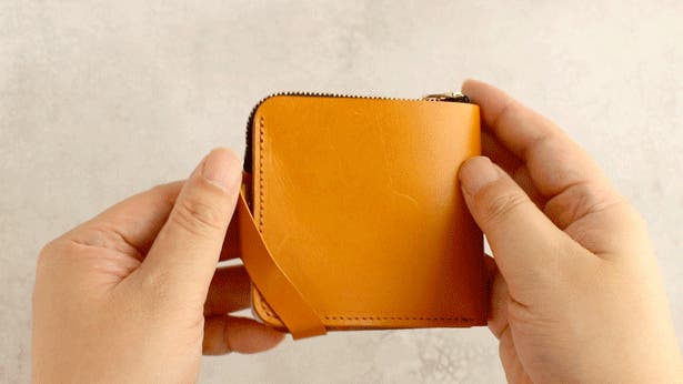 「レジ前で、小銭を出すために財布を開く手間をシンプルにしたい」 その想いから、この財布は背面にL字ファスナー式の小銭入れを配置しました 。