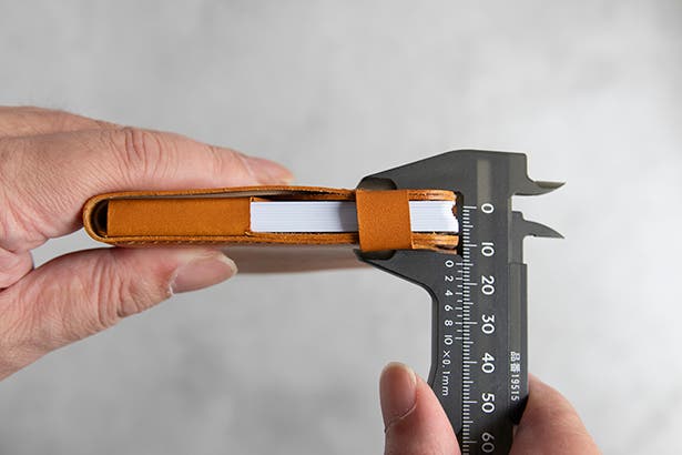 厚さはカード10枚、小銭15枚、お札10枚収納した状態で計測