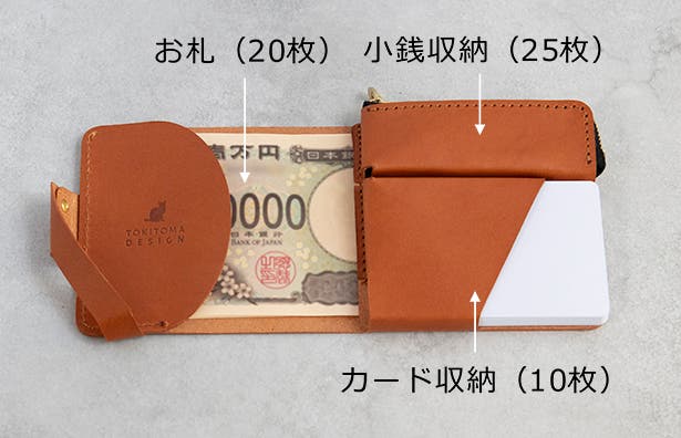 収納可能枚数:小銭25枚、カード10枚、お札20枚