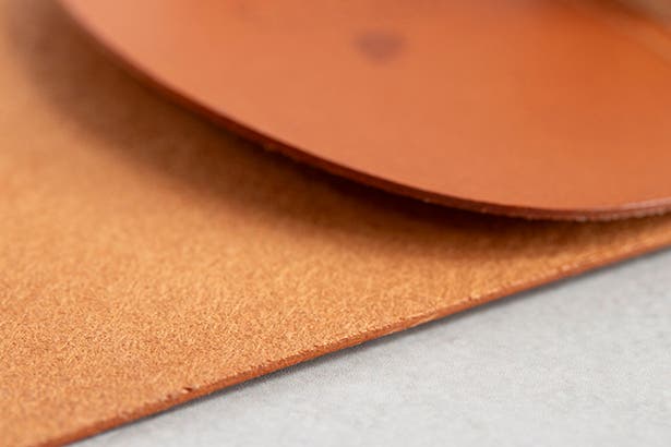 革には、表面(銀面)だけでなく、革をカットした断面である「コバ」と、裏面の少し毛羽立った「床面(とこめん)」が存在します。製品のコンセプトや革の特性によって、あえて処理をしない仕上げも魅力の一つですが、私たちは今回、このコバと床面の両方に丁寧な処理を施しました。