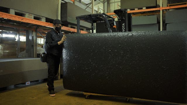 1つのマシンで1ブロックの加工に150分の時間がかかり5本しか製造することができません。大量生産はできませんが、その分時間をかけた価値のあるこだわりの寝心地をご提供いたします。