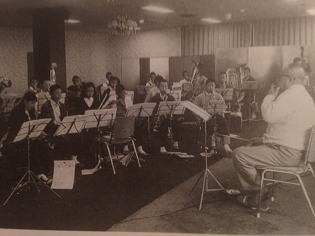 今津中学に奉職して、吹奏楽指導を受け持つようになると、人が変わったように、吹奏楽一筋に首から突っ込んでいった君。手荒な訓練で日本中に鳴り響いても不思議なことに、手ぬるい戦後教育の現場で問題が起きるどころか、子どもたちにもPTAのお母さんたちにもなつかれ、喜ばれて、当時教育委員に就任した私も「これが教育の原点なのだ」と思わせられたものです。