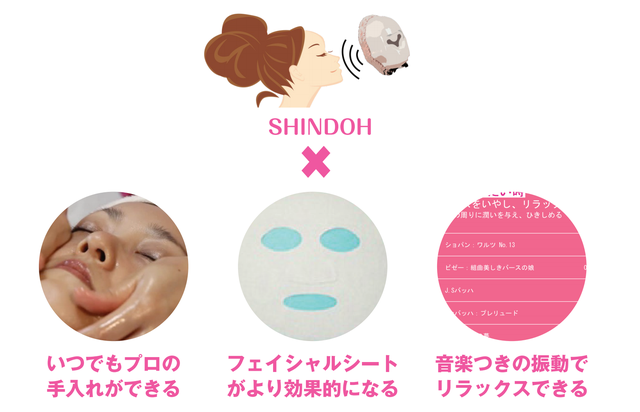 人工知能がエステシャンの「手の動き」をSHINDOH(振動)に変換。専用のフェイシャルマスクをスマホにつなげば、変換された振動によりいつでもプロの手入れをうけられます。SINDOHコスメ『顔リズム』をMakuakeで先行予約販売します。