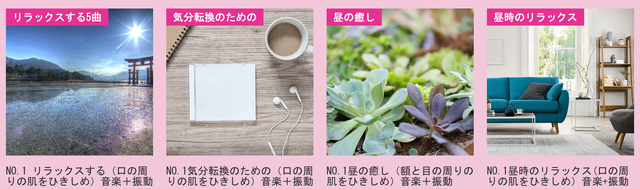 バラエティ豊かに「音楽+音楽から抽出された振動」のコンテンツをご準備しています。自分にぴったりのコンテンツをみつけてください。